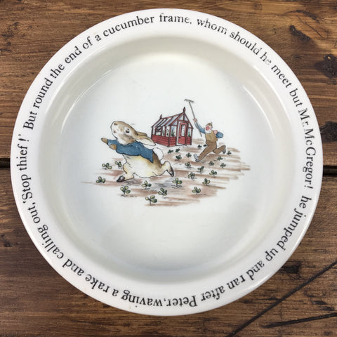 This is the porringer / bowl in Wedgwood's Beatrix Potter Peter Rabbit pattern, part of the Wedgwood nursery ware range inspired by the stories and illustrations of Beatrix Potter.