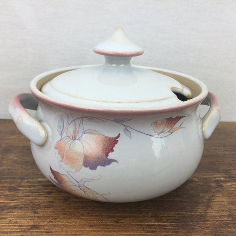 Dies ist die Zuckerdose mit Deckel im eingestellten Denby Pottery Twilight-Design.